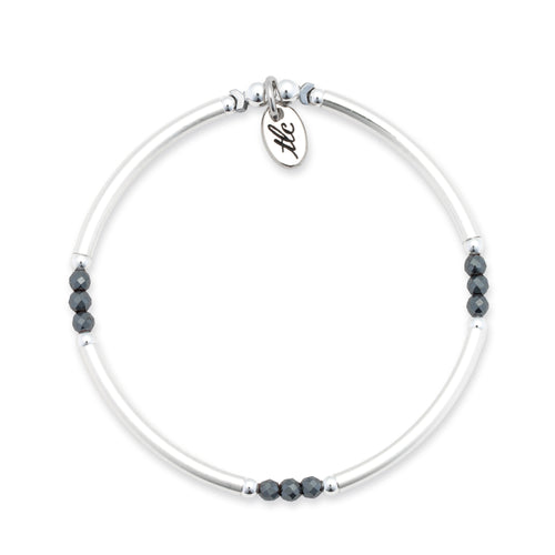 Simply Shine - 2mm Hematite & Sterling Silver Bar Stretch Bracelet
