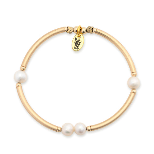 Luxe Pearl - Fresh Water Pearl & Gold Filled Stretch Bangle