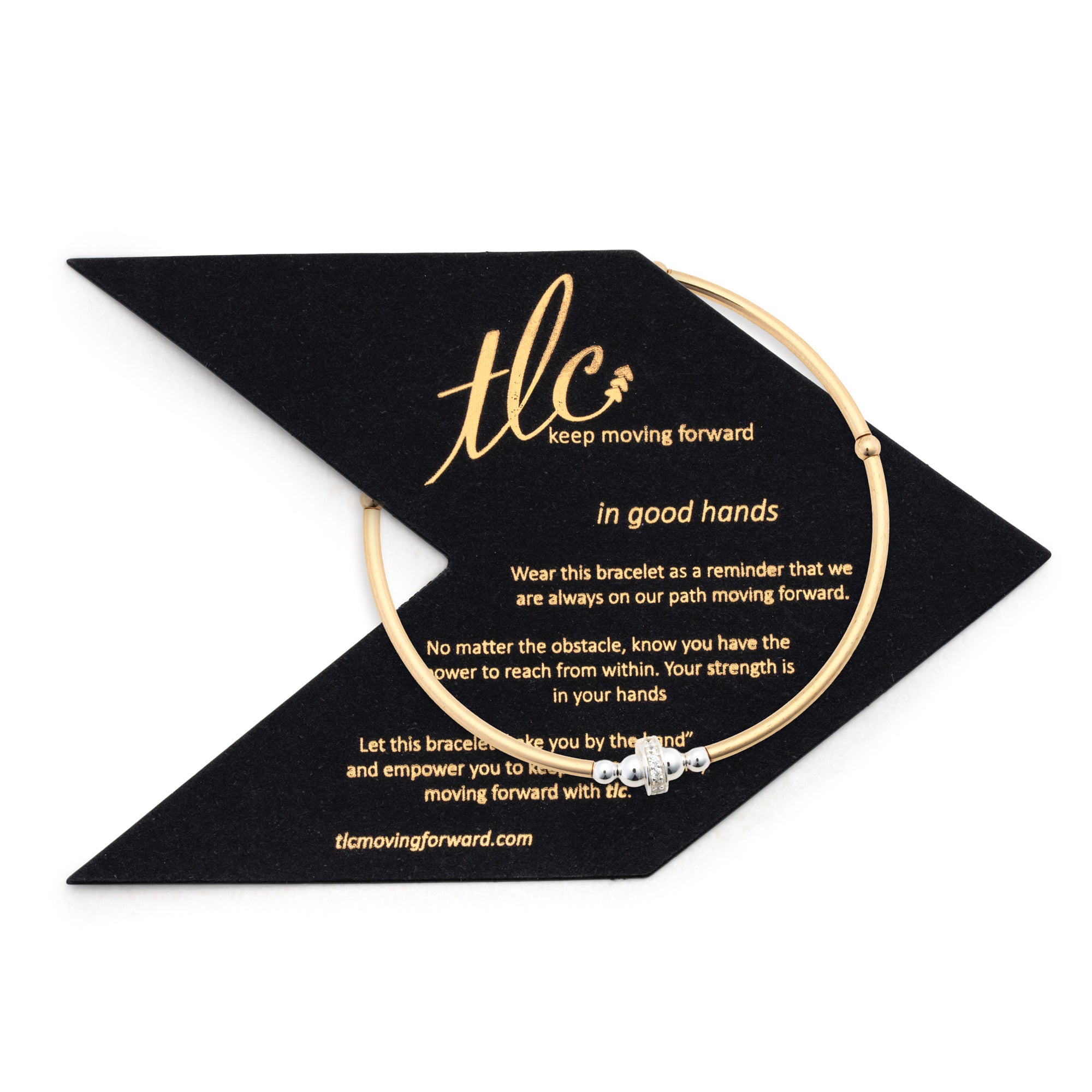 Each bracelet comes with an “in good hands” message card and tlc logo pouch.