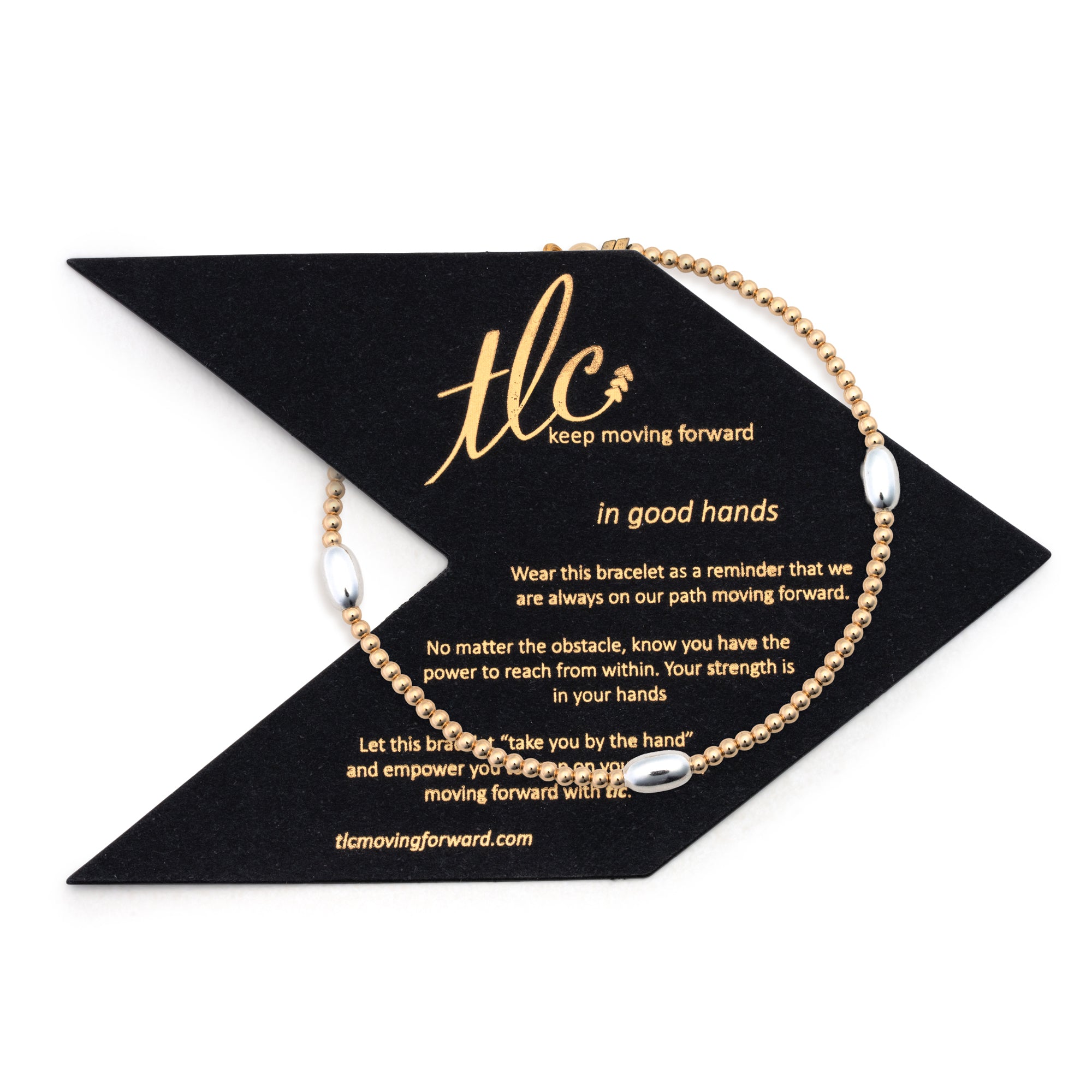 Each bracelet comes with an “in good hands” message card and tlc logo pouch.