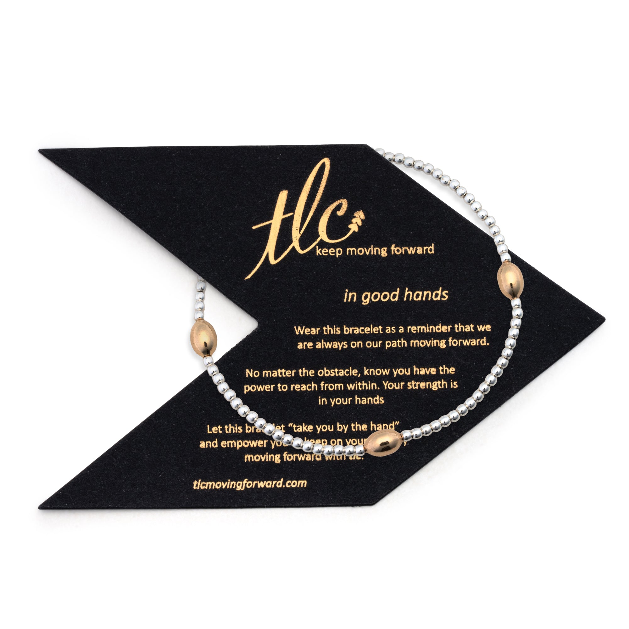 Each bracelet comes with an “in good hands” message card and tlc logo pouch.