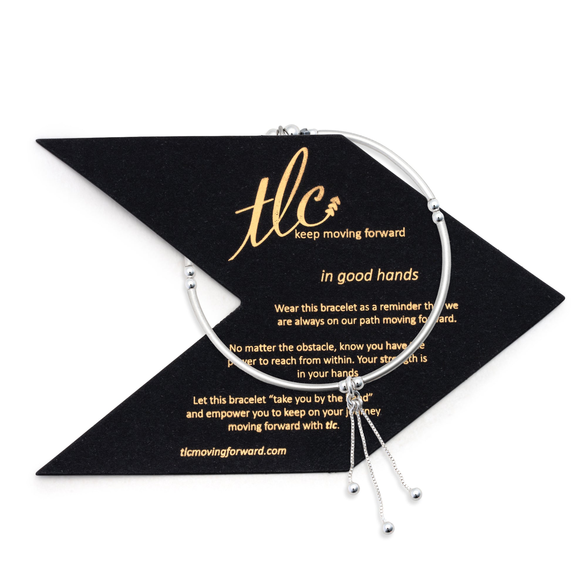 Each bracelet comes with an “in good hands” message card and tlc logo pouch.