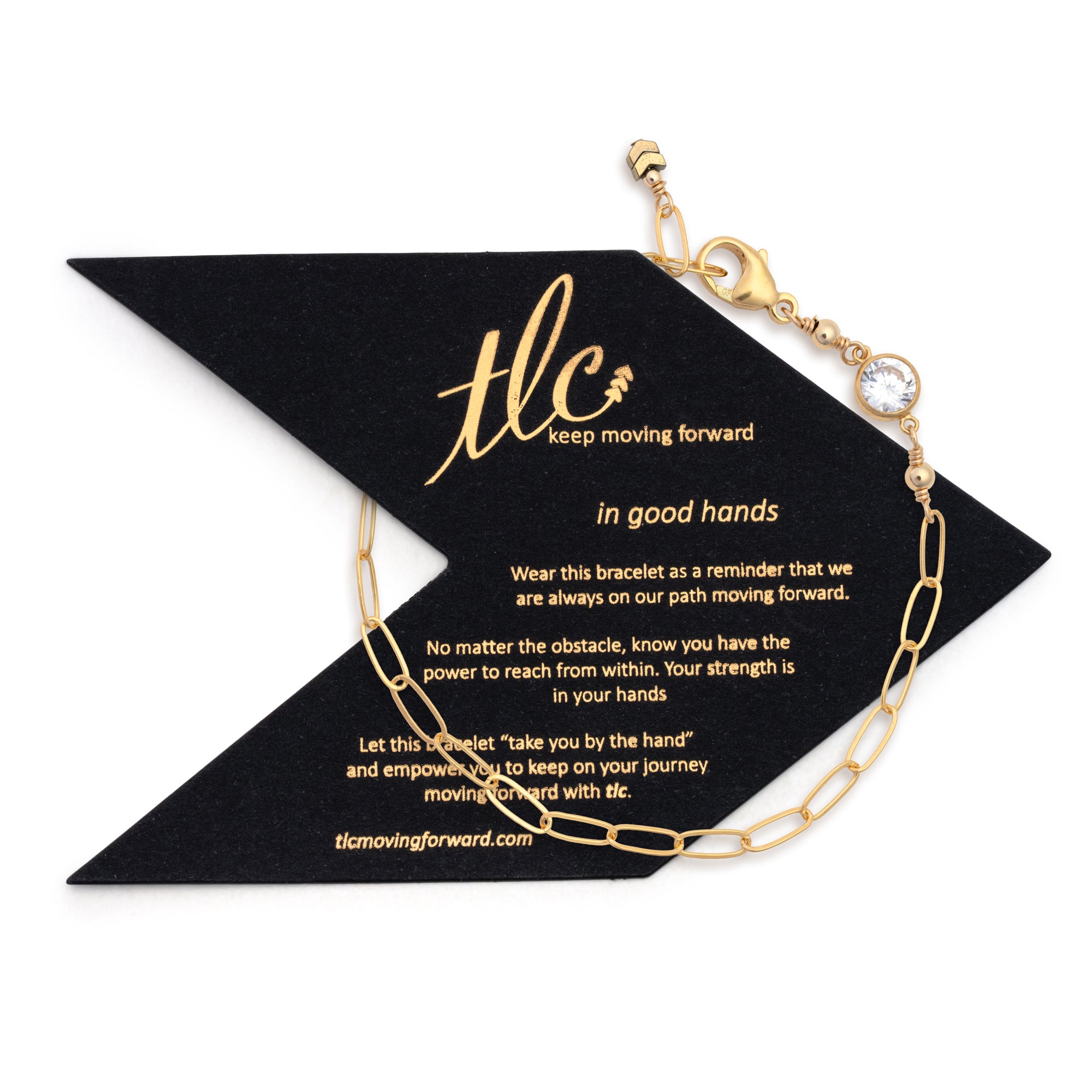 Each bracelet comes with an “in good hands” message card and tlc logo pouch.