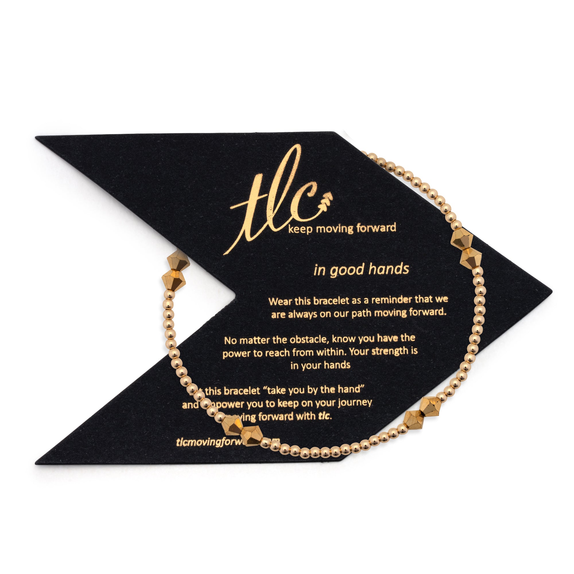 Each bracelet comes with an “in good hands” message card and tlc logo pouch.