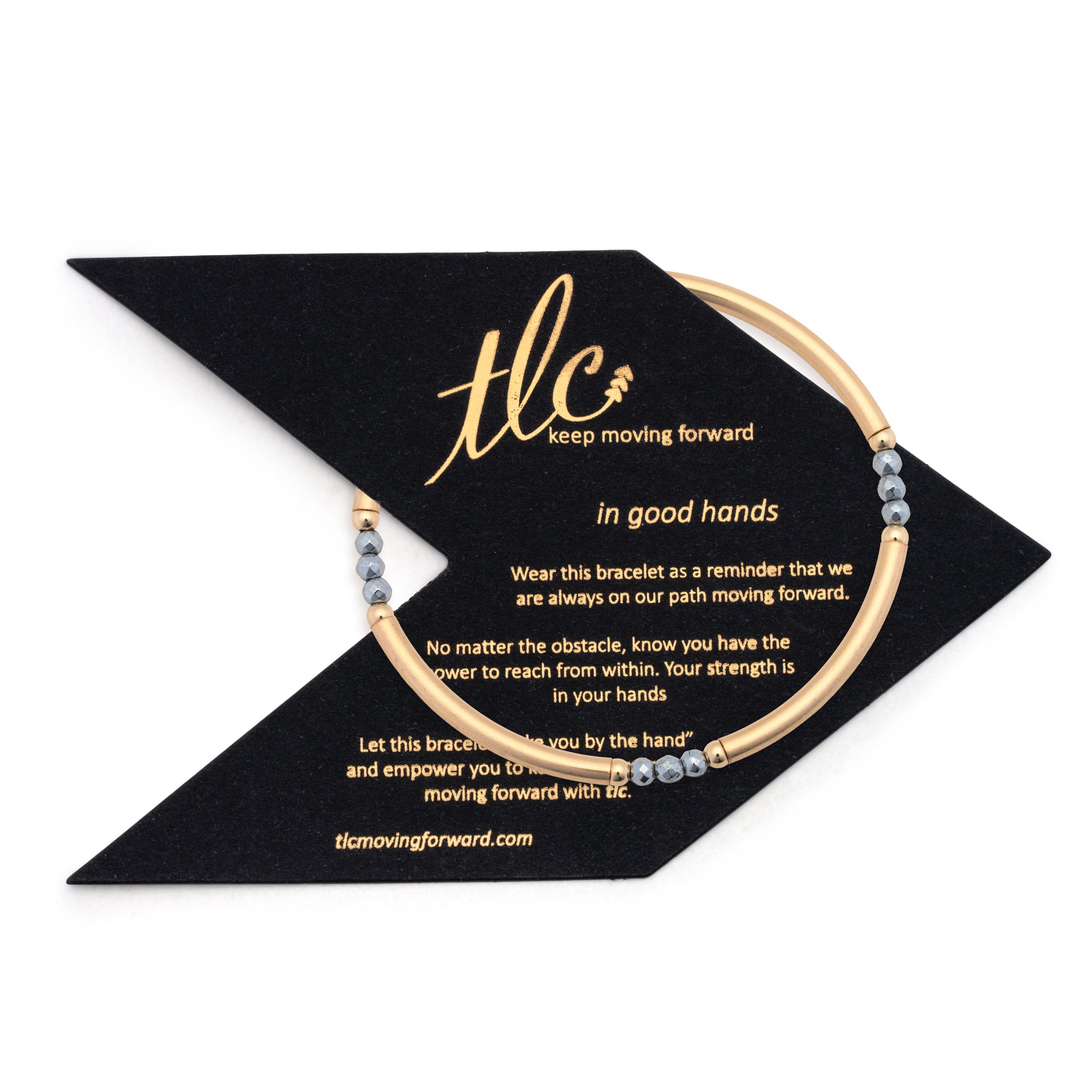 Each bracelet comes with an “in good hands” message card and tlc logo pouch.